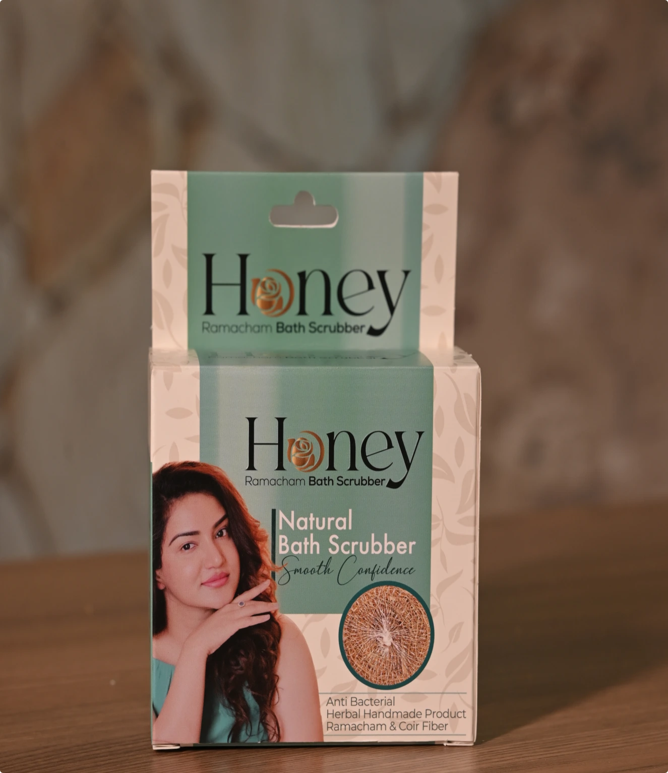 Honey Ramacham Natural Bath Scrubber is made using carefully selected vetiver (Ramacham) roots, traditionally known for their refreshing aroma and cooling properties. It helps cleanse the skin, remove dead skin cells, and leave you feeling naturally fresh after every bath. Designed for strength and durability, the scrubber is crafted from natural, plant-based material.